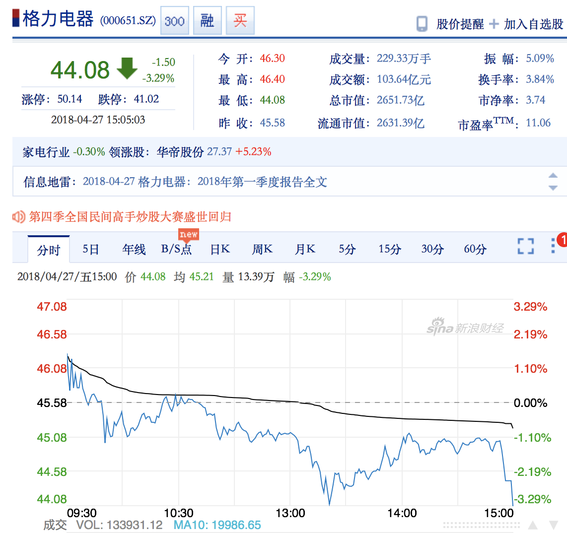 天有不测风云,格力电器的业绩上升得并不那么顺利。2015年度实现营业收入977.45亿元,同比下降29.04%;归属于上市公司股东的净利润125.32亿元,同比下降11.46%,2015年的营收和利润大跌,一度回落到三年前,这给了董明珠相当大的压力。
