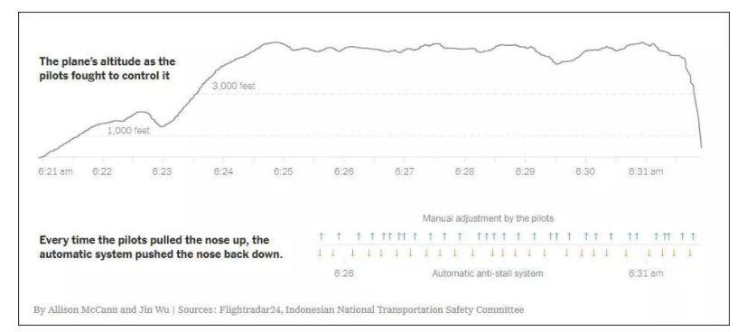 要知道,之前失事的狮航737MAX飞行员,在坠毁前尝试和持续抢夺控制权多达20多次,多次在坠毁边缘将机头拉起,但没过几秒又被系统强制夺走控制权,拼命压低机头。飞行员再次拼尽全力夺回控制权,再次拉起机头,结果还没喘口气就又被系统夺走控制权,再次往下压。这样来来回回抢夺20多次之后,飞机终于失速坠毁,一头栽进了大海。在这来来回回的搏斗中,飞行员和乘客该有多惊恐,多绝望。当飞机一头栽向海平面的时候,当爆炸和高压海水冲击瞬间涌来的那一瞬间,飞机上的人们该是多么恐惧和痛苦。