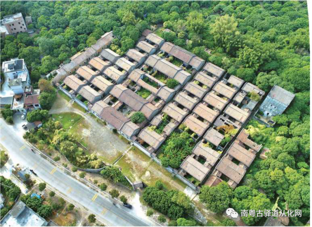 从化的古村落规划布局大同小异。一般村前有一块开阔的空地,空地前有一个半月形的大池塘。池塘为风水塘,不但能阻隔盗匪,火灾时还能作救火之用;村口一般还种有一株或几株细叶榕,作风水树,为村民遮阴避暑,也寓意村落繁衍如榕树般枝繁叶茂。村落规划整齐,布局合理,一般为梳式布局。纵向则有小巷贯穿全村,砌渠排水;横向则每户人家两侧的门打开可以一目贯通,守望相助,也便于村民串门。村落里的民居建筑颇具南方特色,部分融合了中原民居的建筑风格。从化民居的典型形制是三间两廓,对外不开窗。三间正房中的中间一堂为厅堂,用于供奉祖先及全家起居饮食的活动空间,两侧各一间为卧室,而卧室与厨房和杂物间相连,卧室 四面墙壁均不开窗,只靠屋顶明瓦采光。民居的形制主要考 虑到防盗作用。此外,部分村落还有护村墙、护村河和炮楼等 具有防御功能的建筑。